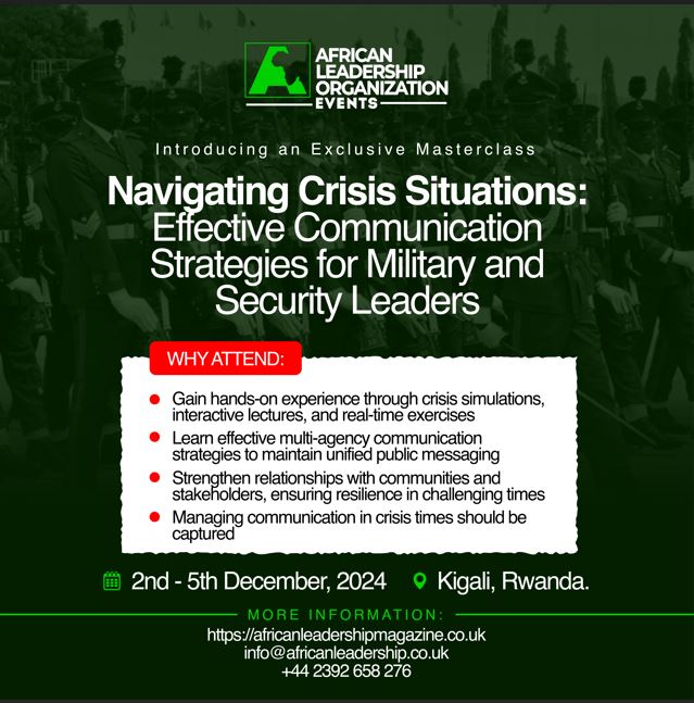 Join us *December 2-5, 2024, in Kigali, Rwanda, for an intensive session on Navigating Crisis Situations : “Effective Communication Strategies During Crisis Situations” — specially crafted for Africa’s senior military, security, and paramilitary leaders.